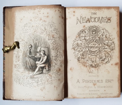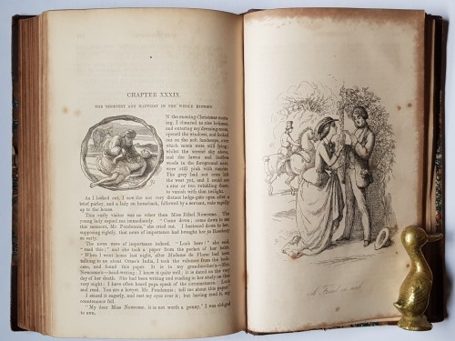 Published by Bradbury & Evans, London, 1854. First edition. Hardback in 2 volumes. Half bound in brown hide and marbled boards, with 5 raised bands decorated in gilt. Dark page edges. Approx board size: 21.5cm H x 14.5cm W (8 ½”H x 5 ¾”W). vi, 380pp (V1) & vi, 375pp (V2) Extensively illustrated with b/w plates, chapter headings & vignettes, including different title pages for the two volumes.